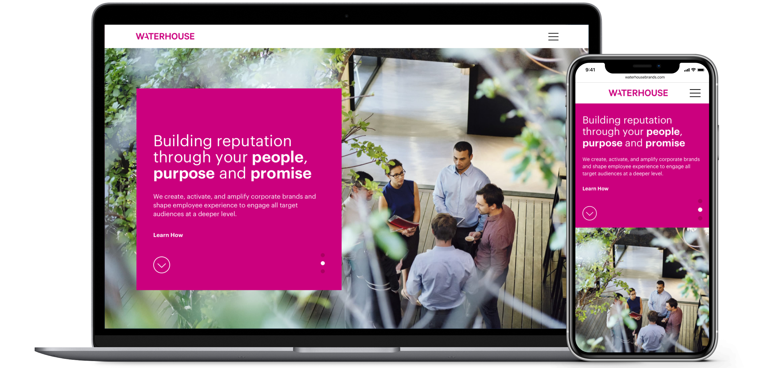 After adopting an elegant new logo and visual identity, the team at Waterhouse needed a web experience to match. The new website needed to focus on telling the story of the growing agency, while serving as a new business hub.