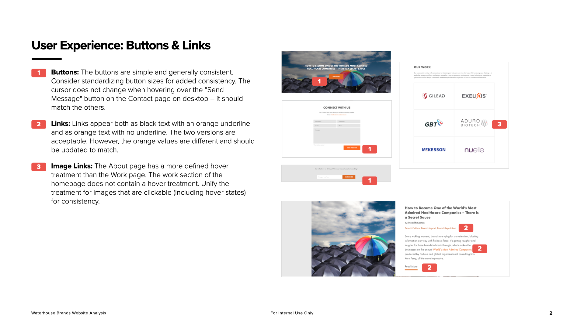 During the discovery phase of the project, I conducted a detailed analysis of the current site, to ensure the team rallied around opportunities to improve the new version.